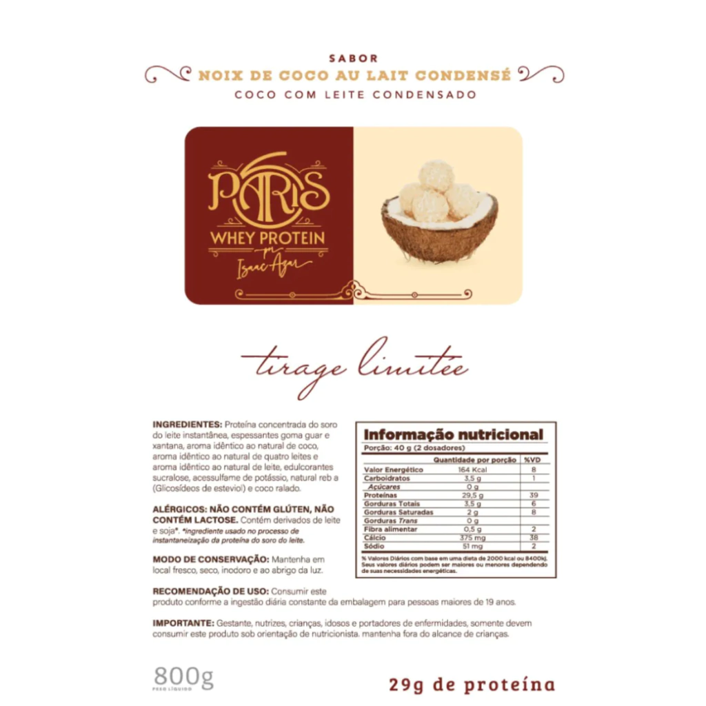 Chef Whey Coco com Leite Condensado Paris 6: o equilíbrio perfeito entre nutrição, sofisticação e sabor, feito para quem acredita que cuidar de si também pode ser uma experiência deliciosa.